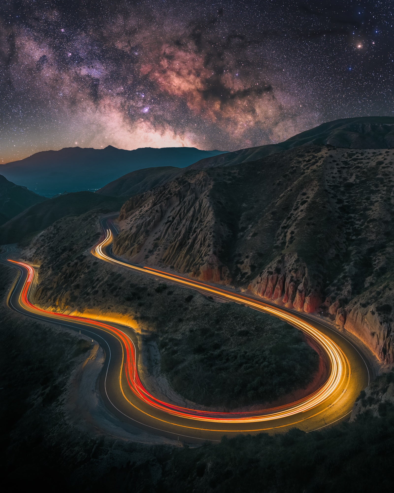 大きく大胆に配置されたヘアピンカーブと天空を流れる天の川がダイナミックな構図を作り出しています。応募作品の中でとても目立っていました。しかも、車が描き出す光跡が雰囲気のある発色になっています。恐らく光害カットフィルターの効果が活きているからではないと推測されます。撮影技術と大胆さを併せ持った作品と言えます。