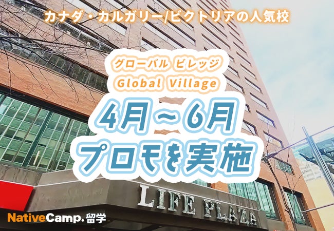 ネイティブスピーカーと回数無制限のオンライン英会話サービス「ネイティブキャンプ英会話」を展開する株式会社ネイティブキャンプ(東京都渋谷区 代表取締役:谷川国洋)は、海外留学エージェントサービス「ネイティブキャンプ留学」において、カナダ・カルガリー/ビクトリアの語学学校Global Villageにて、4月〜6月プロモーションを実施いたします。