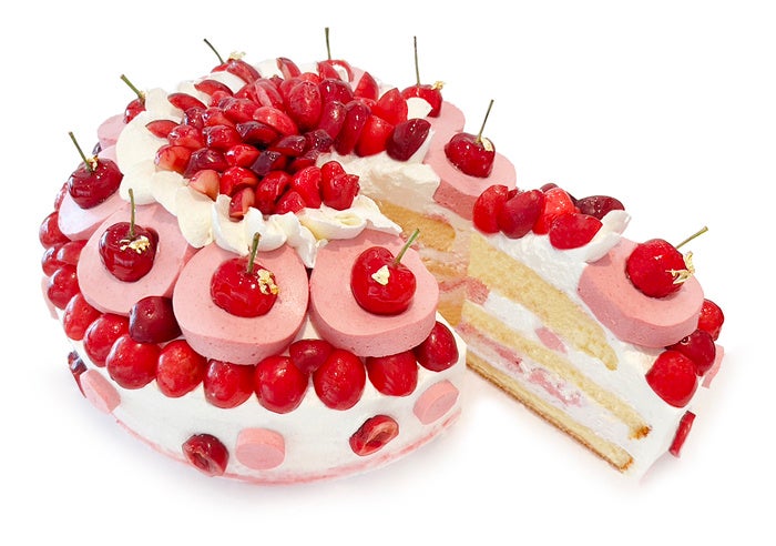 爽やかで優しい甘さの、山形県産のさくらんぼ「佐藤錦」をふんだんに使用し、さくらんぼムース、生クリームと共に飾り付け、スポンジを合わせました。さくらんぼの美味しさを堪能できるショートケーキです。