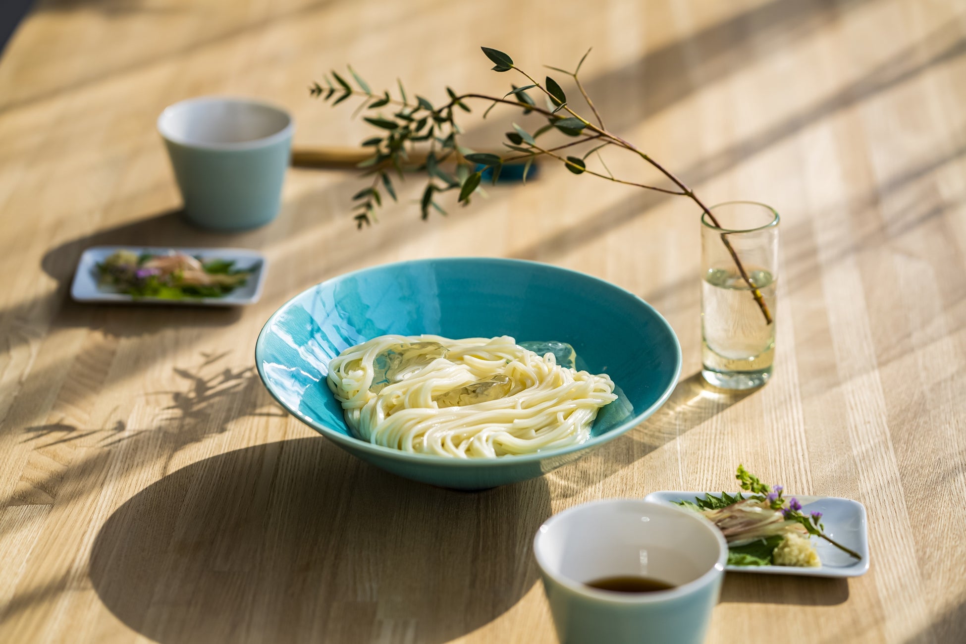 奈良が誇る製麺士である山下勝山氏の手延そうめんは、味わったことのないなめらかさと光沢。のどを流れるように駆け抜けていきます。それはもはや“のど越し”を超えた“のど走り”と表現したい食感です!