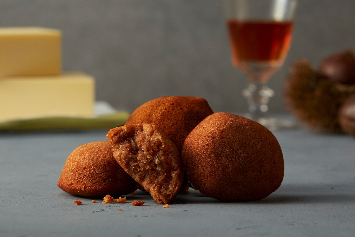 一級品として名高いAOPバター、その中でもヘーゼルナッツのような豊かな風味のモンテギューAOPバターを惜しむことなくたっぷりと使い丁寧に焼き上げたバターフィナンシェです。ナッツは甘みと深みが出るようヘーゼルナッツをアーモンドに合わせてまろやかな香ばしさに仕立てました。