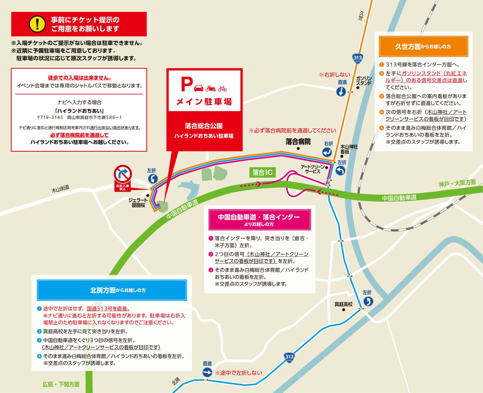 来場方法:下記の特設駐車場まではお車(バイク・自転車可)でお越しください。