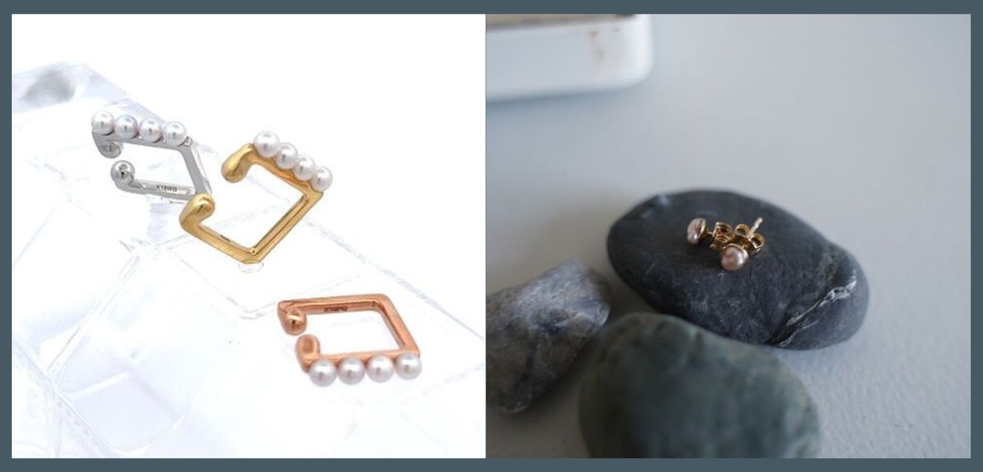 (左)いつものコーディネートにもう少し何かを足したい時に着けたくなるイヤーカフ。主張しすぎない耳元のおしゃれは、ジュエリー初心者にもぴったり!