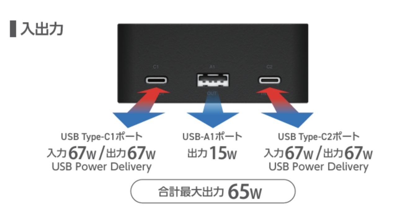 USB Power Delivery 67W出力に対応!