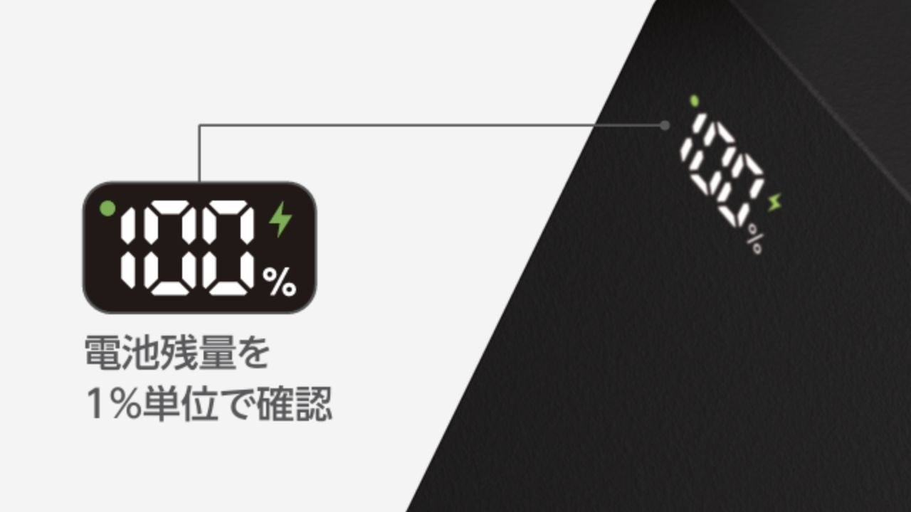 パソコンを充電できる67W出力!LEDパネルで残量を1%単位で確認できるコンパクトサイズの20,400mAhモバイルバッテリーを新発売