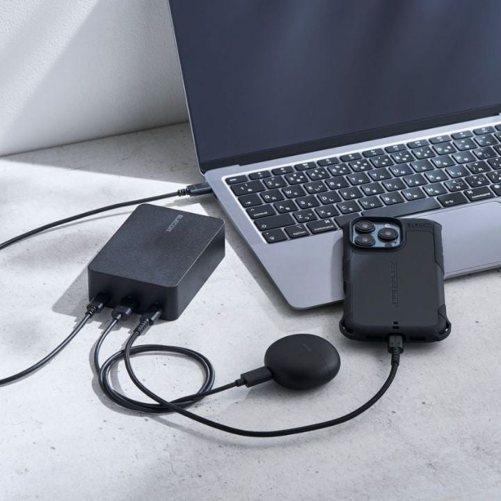USB Type-Cポートを2ポート、USB-Aポートを1ポート搭載。2ポート同時接続時、合計最大65Wの出力が可能な高出力モデルです。