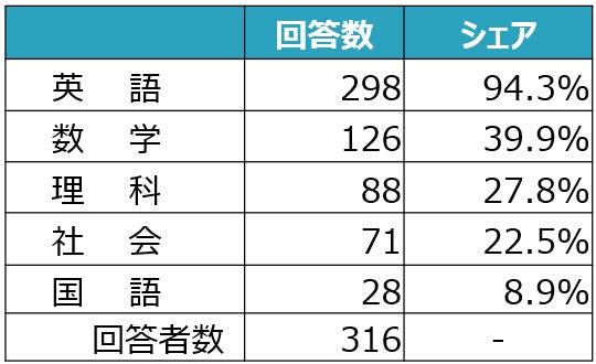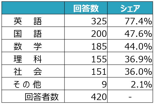 Q:定期テスト対策において、課題を感じている教科は何ですか?