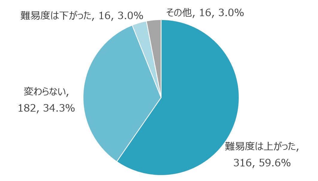 ・学習塾関係者の59.6%が2021年の教科書改訂以前と比べて定期テストの難易度は上がったと回答