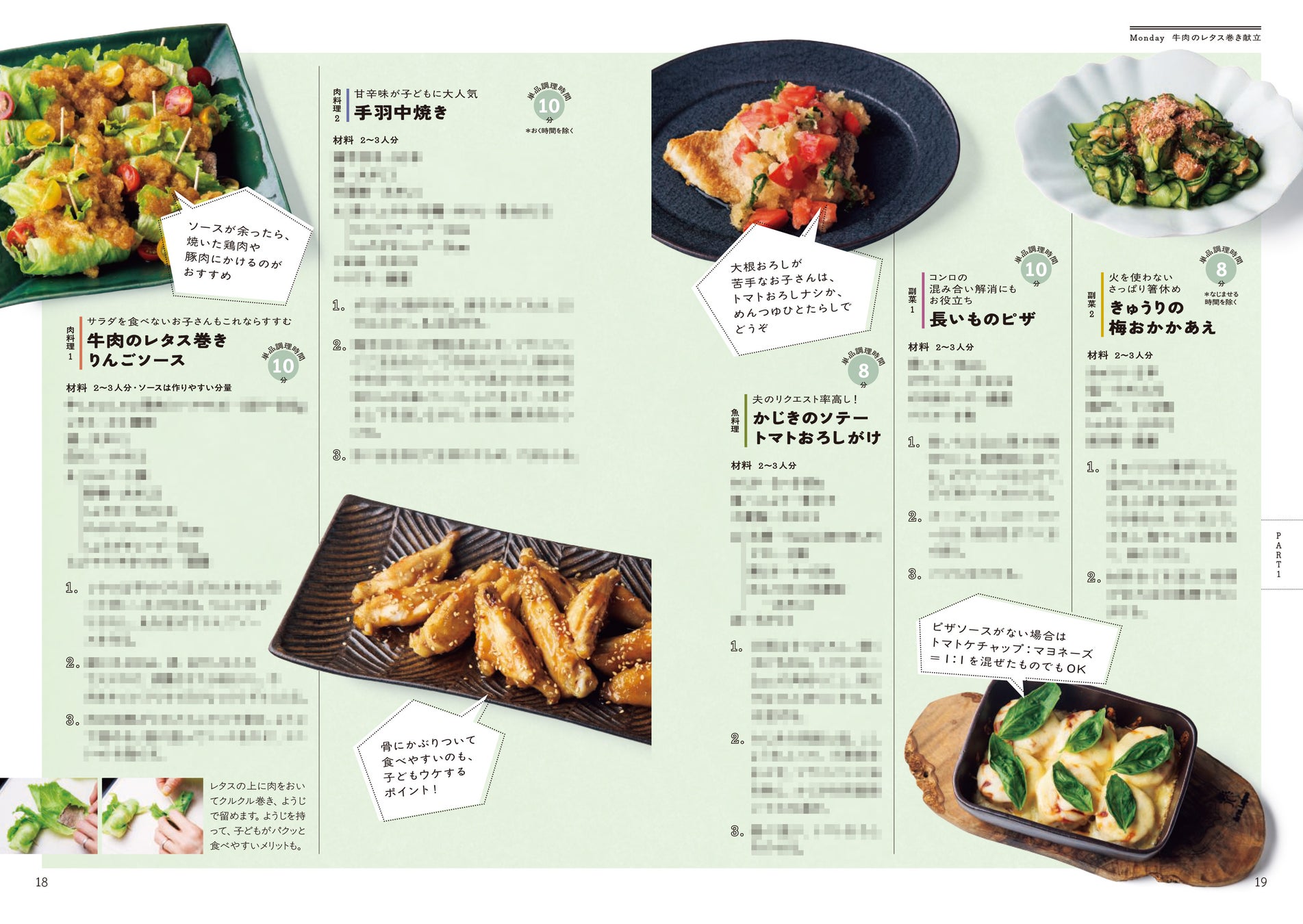 冒頭では毎日の献立づくりのコツだけでなく、ムダを省いて時短で済ませるための買い物ルーティンや時短調理ルーティンを紹介。