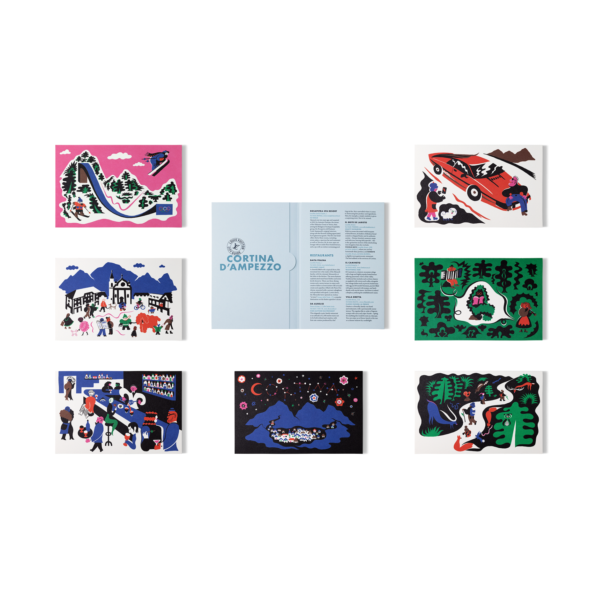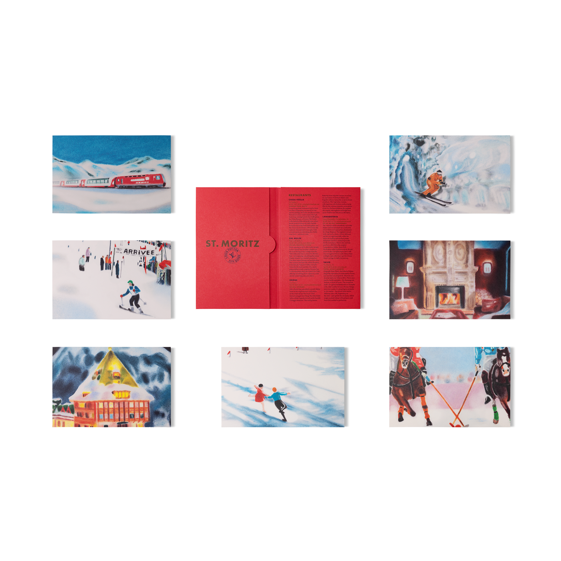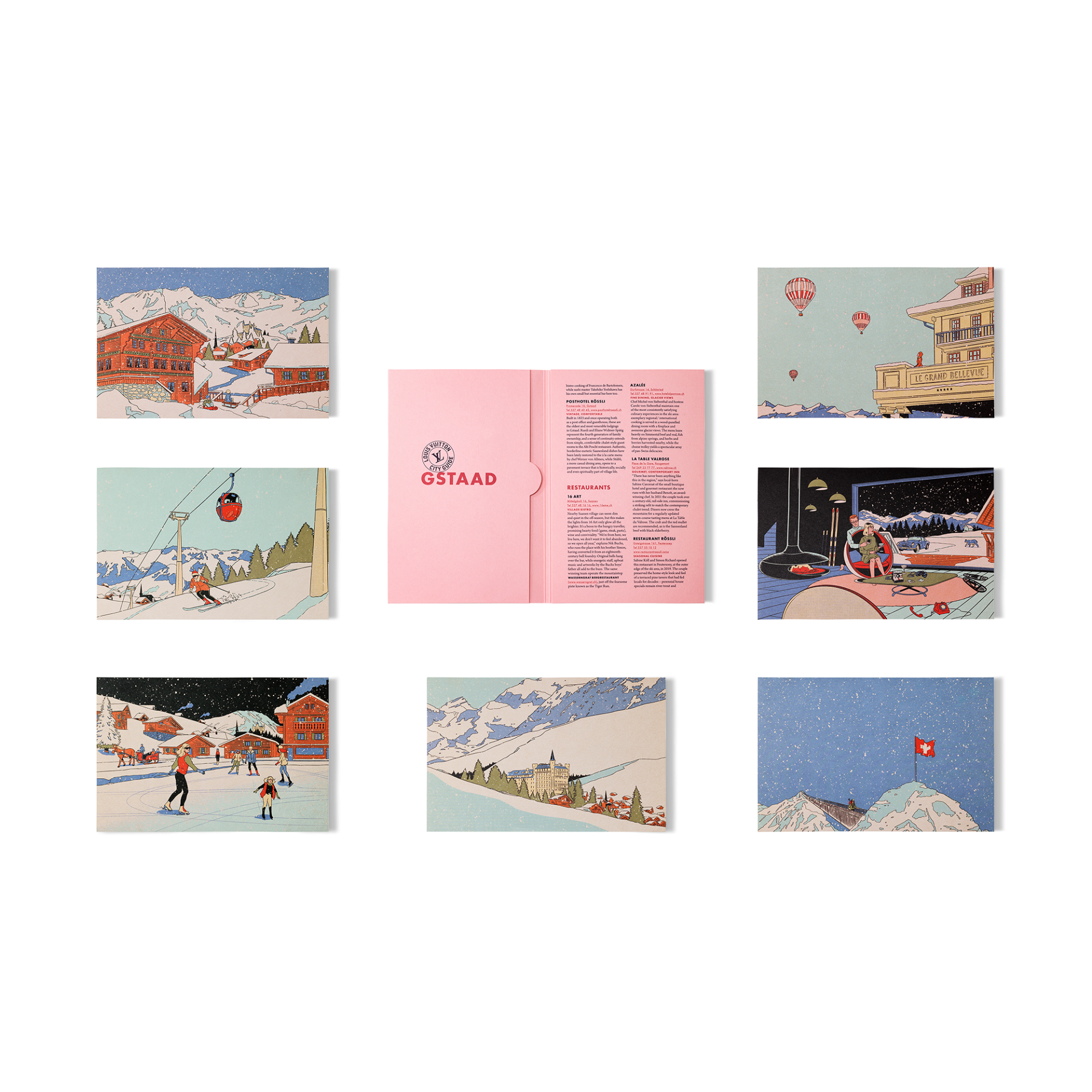 冬にぴったりの、厳選されたウィンターリゾートのクールシュヴェル、コルティーナ・ダンペッツォ、アスペン、クシュタート、サン・モリッツ、そして初登場のキッツビューエルとクラン=モンタナにフォーカスし、各地の必見スポットをご紹介するエクスクルーシブなボックスセットを刊行。ゲストイラストレーターとして起用されたトム・オゴマ、サラ・マゼッティ、ヨヘン・ゲルネール、シモン・バイイ、リザ・ムシェ、ジャコモ・ナンニ、そしてファニー・ブランらが、各地のスキーリゾートを1ヶ所ずつ担当し、独自のビジョンを表現しました。