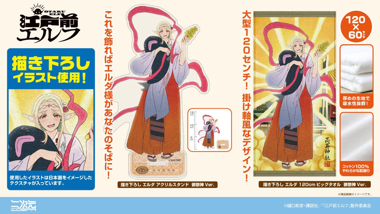 TVアニメ『江戸前エルフ』より、描き下ろしイラストを使用した「エルダ」アクリルスタンドやビッグタオルが登場!AJ先行販売も!【株式会社コスパ】