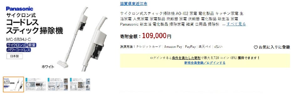 【先行掲載&10月中はふるなび限定!】滋賀県東近江市の返礼品としてパナソニックの人気商品コードレススティック掃除機を掲載開始!