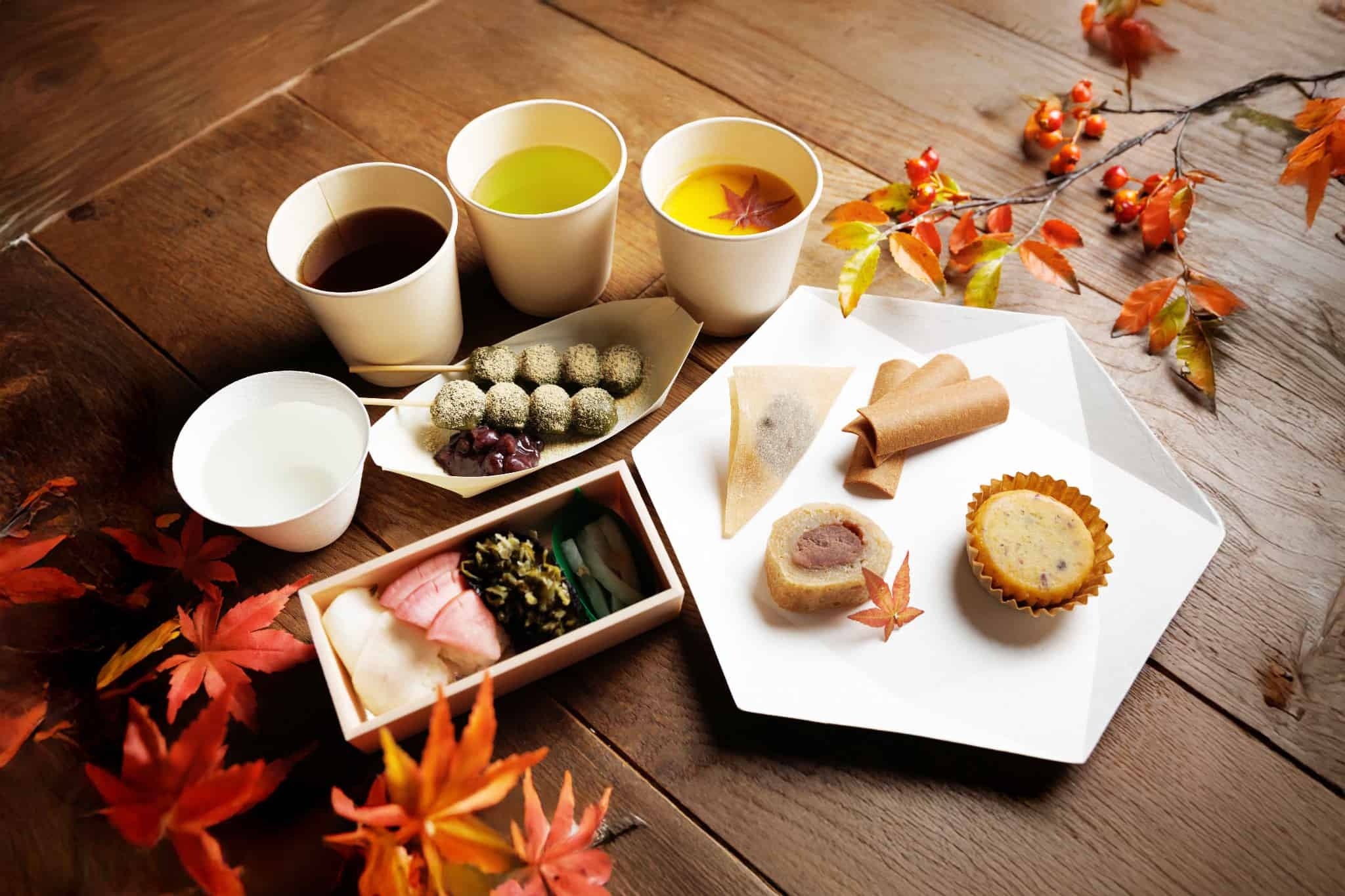 創業200年以上の老舗茶舗・福寿園とのコラボレーションによる新体験「観月茶」では、平安時代の遊び「月見香(つきみこう)」を現代的にアレンジ。参加者は「新月」「半月」「満月」をイメージした3つの香りから好きな香りを選び、その香りに対応したお茶を味わいます。ドライフルーツやスパイスなどを組み合わせた12種類のブレンドティーが用意され、自分だけの“月のお茶”を完成させる体験が楽しめます。香り・味・視覚を通じて、京都の茶文化と観月の心が交差するひとときを演出します。