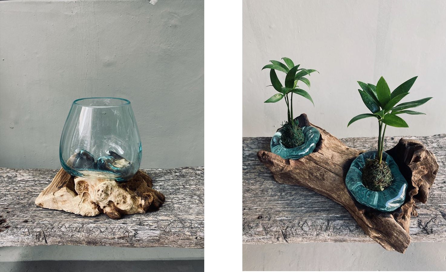天然の流木と100%リサイクルガラスの融合で新しい姿に生まれ変わり、時代を越え、長く愛される商品へ....