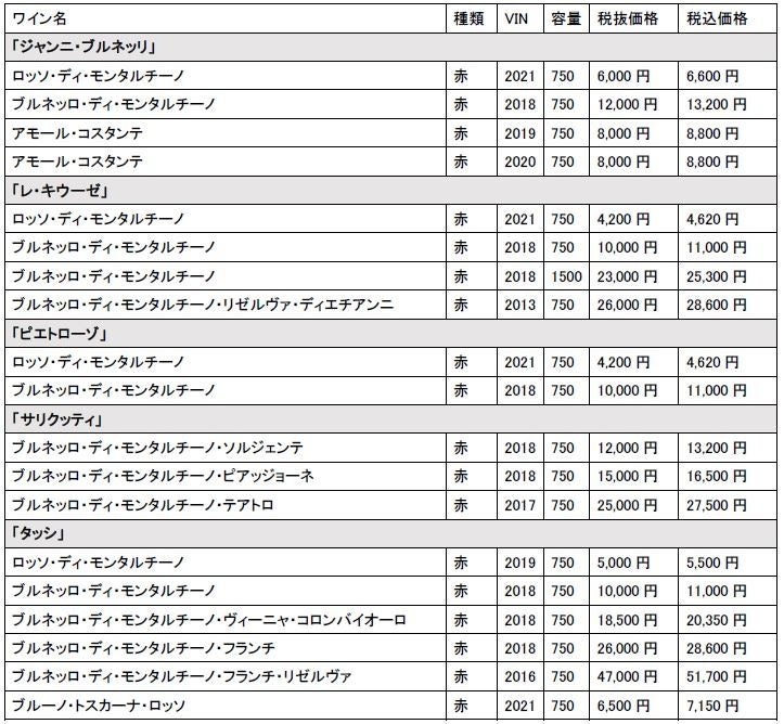 イタリア・トスカーナ州 ブルネッロ・ディ・モンタルチーノの5ブランド「ジャンニ・ブルネッリ」、「レ・キウーゼ」、「ピエトローゾ」、「サリクッティ」、「タッシ」 11月1日から正規代理店として販売開始