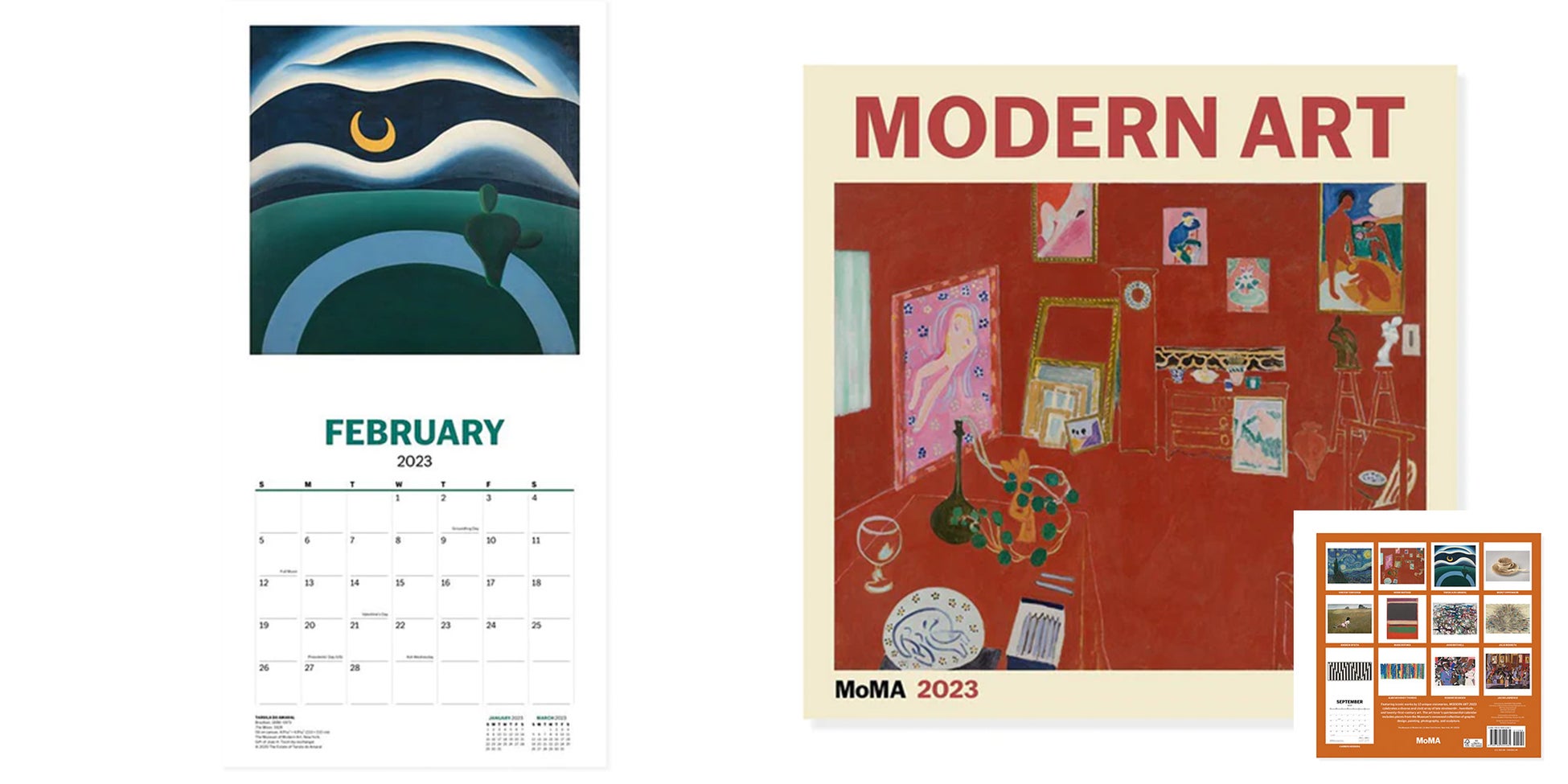 MoMAに収蔵されているコレクションより、モダンアートの作品をフィーチャーした壁掛けカレンダーです。2023年のモダンアートカレンダーは、フィンセント・ファン・ゴッホ、アンリ・マティス、ロマア・ビアデンなどの作品を含む12種類が収録されています。