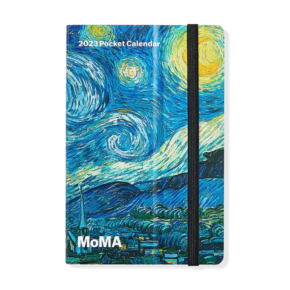 2023年版はMoMAコレクションの中でも最も人気の高い作品の一つ、フィンセント・ファン・ゴッホの『The Starry Night (星月夜)』が表紙に選ばれました。バッグに入るコンパクトサイズのハードカバーの手帳で、1週間ベースのカレンダーとアドレス帳ページで構成し、裏表紙の内側にポケットが付いています。ゴムのバンドで閉じることができるのも便利。MoMAと一緒に充実の1年をお過ごしください。