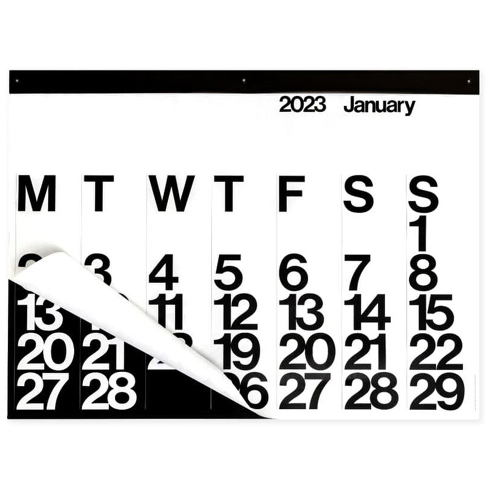 この超特大サイズのカレンダーは、1966年にマッシモ・ヴィネッリによってデザインされ、同年MoMAコレクションに加わりました。フォントにはHelvetica (ヘルベチカ) を使用し、大きな文字と、月により白地に黒文字と黒地に白文字がランダムに入れ替わるデザインは、その形態と機能の完璧な融合によってデザイン界の至宝と謳われるほど。50年以上たった今も、60年代グラフィックデザインの好例として世界中で愛され続けています。