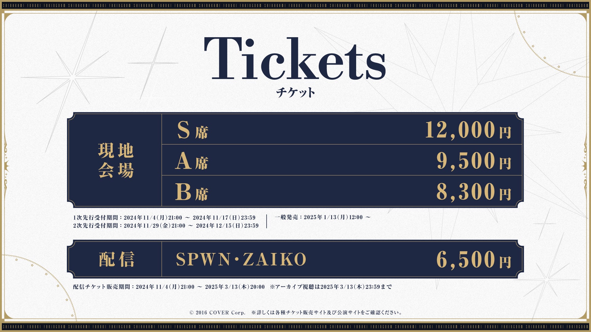 本日11月4日(月)より現地会場チケットの1次先行(抽選)の販売を開始すると共に、「SPWN」「ZAIKO」にて配信チケットも開始いたしました。