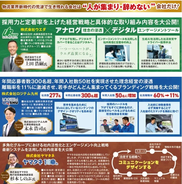 この「物流HRサミット2025」は、労働人口減少、2024年問題といった物流業界が直面する人材課題の解決に特化したセミナーです。運送会社・物流会社の経営者や人事担当者を対象に、入社後の早期離職防止、社員の定着率向上、効果的な採用手法、モチベーション維持の仕組みづくり、そして人事評価・賃金制度の見直しまで、具体的な「人財戦略」の策定方法を専門家が解説します。業界の未来を築くための、実践的な人事ノウハウを学ぶ絶好の機会です。