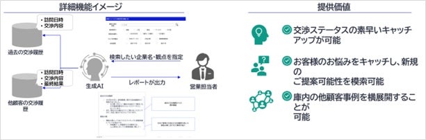 地域金融機関では、法人取引先や個人顧客に対するコンサルティング営業の重要性が高まる一方、訪問準備や交渉記録整理といった定型業務に多くの時間が費やされています。NECは、生成AIを活用することで、営業担当者がより多くの時間を顧客との対話や課題解決に充てられる環境を提供し、地域金融機関の地域密着型ビジネスモデルを強化していきます。
