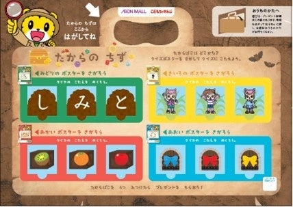 文字や数などの知育をテーマにしたクイズラリーです。クイズが掲載された4色のポスターをモール内で探し、スタート地点でお渡しする「宝の地図」の中から答えをめくって回答します。ポスターは館内の複数箇所に掲示しているため、館内を回遊しながらポスター探しも楽しめます。