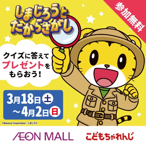 株式会社ベネッセコーポレーション(以下:ベネッセ)の幼児の教育・成長支援ブランド「こどもちゃれんじ」とイオンモール株式会社(以下:イオンモール)は、3月18日から、全国のイオンモールで『しまじろうとちょうせん★キャンペーン』を開催します。