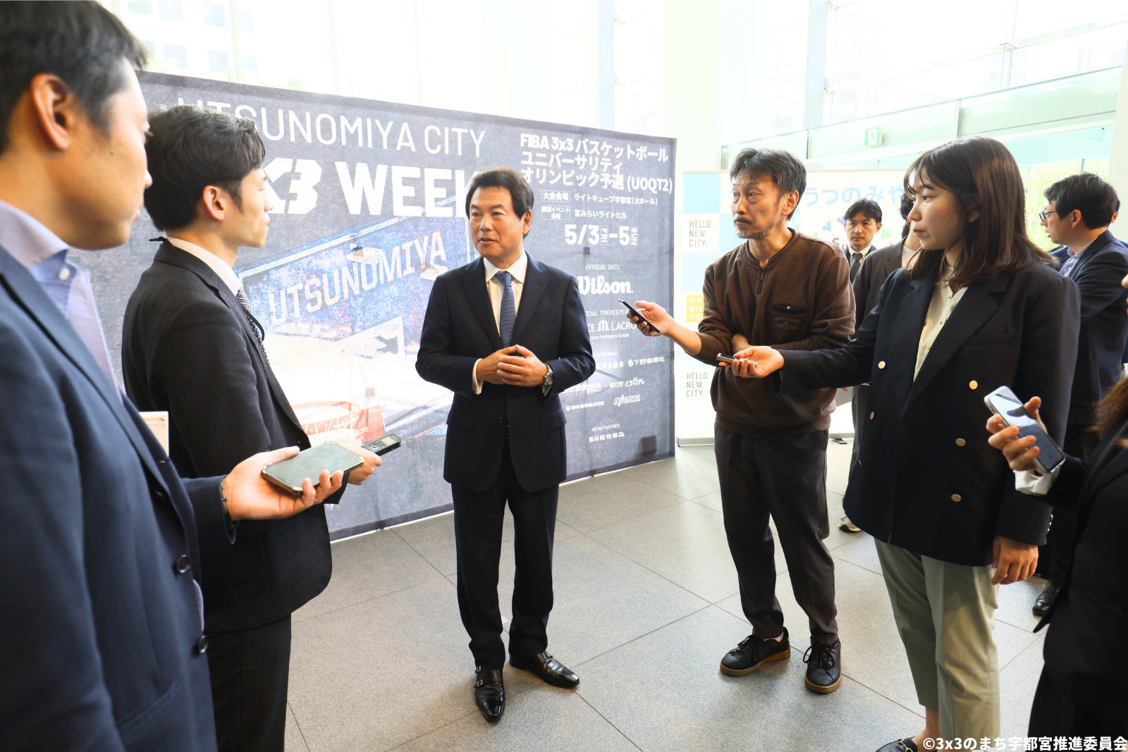 さらに、同大会を誘致した宇都宮市の佐藤栄一市長も登壇し、「大いに世界に向けてFIBA 3x3の魅力と、それぞれの国を代表して戦うチームをしっかりと伝えたいと考えております。これからも宇都宮市は、3x3のまち宇都宮として、しっかりと役割を果たしてまいりたいと思います。そのためのパリオリンピック予選大会を成功させるとともに、4月と5月の3×3を“3x3WEEK”といたしまして、最大限の力を発揮してまいります。」とスピーチ。