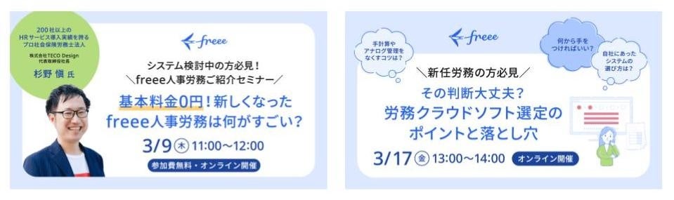 また、3月17日(金)13時からは新任労務の方を対象に「その判断大丈夫?労務クラウドソフト選定のポイントと落とし穴」を開催します。