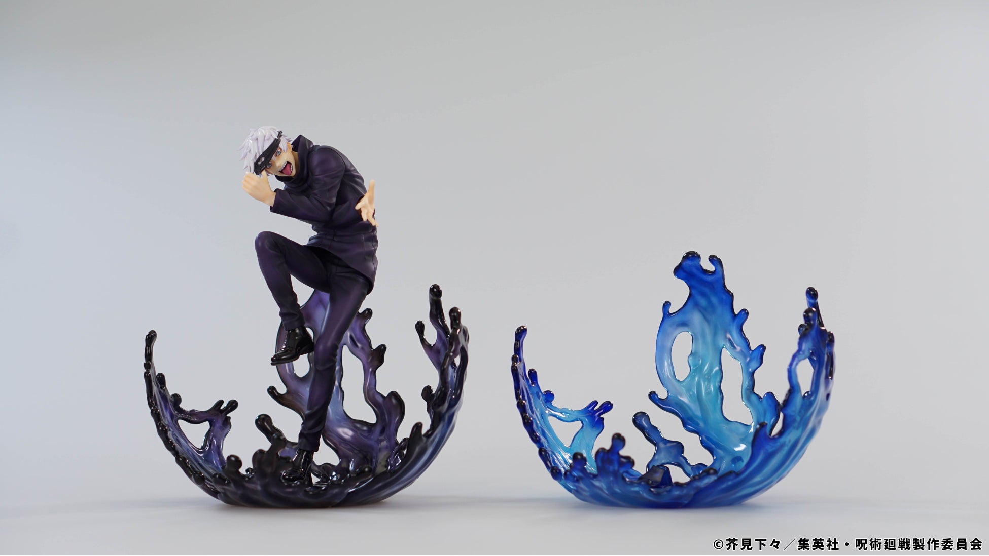 カラー版「五条 悟 1/7スケールフィギュア」のエフェクトパーツと「五条 悟 -モノクロ Ver.- 1/7スケールフィギュア」のエフェクトパは交換して飾ることも可能です。是非、迫力のある姿をお手元でお楽しみください。