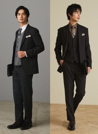 成人式の装いが多様化する昨今、ORIHICAは新成人の皆さまの「特別な一日」を華やかに彩り、トレンドを意識したスタイリングをご提案いたします。定番のベスト付きスリーピーススーツはネイビーやブラックを基調としながら、シャツやネクタイにワインやグレーといったトレンドのダークカラーを取り入れ、洗練された印象を与えます。また、今年一押しのアイテムとしては、ビジネスシーンでも人気の新色ブラウンスーツがおすすめ。シャツまで同系色で統一することでネクタイがアクセントとなり、大人らしく華やかなワンランクアップの装いになります。ブラックスーツにライトグレーベストの定番コーディネートには同系色のストライプ柄ネクタイを合わせ、大人の雰囲気が漂うシックでスタイリッシュな着こなしを演出いたします。