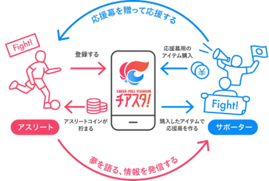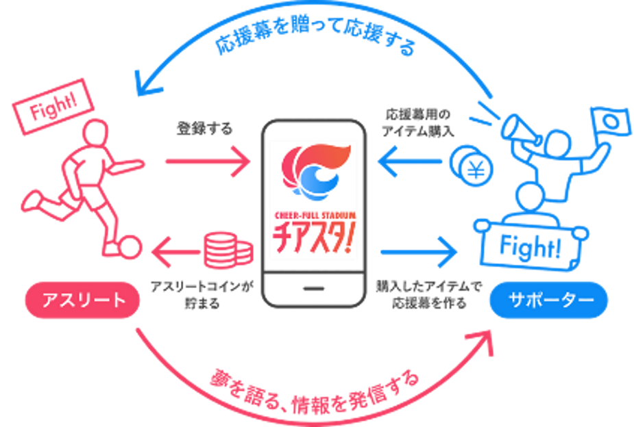プロからアマチュアまで、多様な競技の個人アスリートやチームが活動情報や目標実現に向けた日々の練習、試合結果などを発信し、応援するサポーターとコミュニケーションできるWebサービス。自分だけのデジタル応援幕を作成し応援することなどが可能!