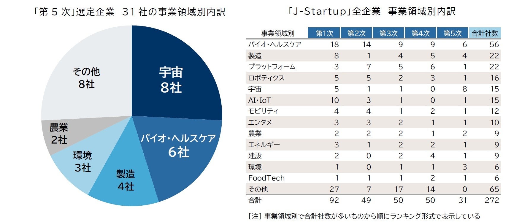 「J-Startup第5次」は31社、事業領域は“宇宙系”が最多