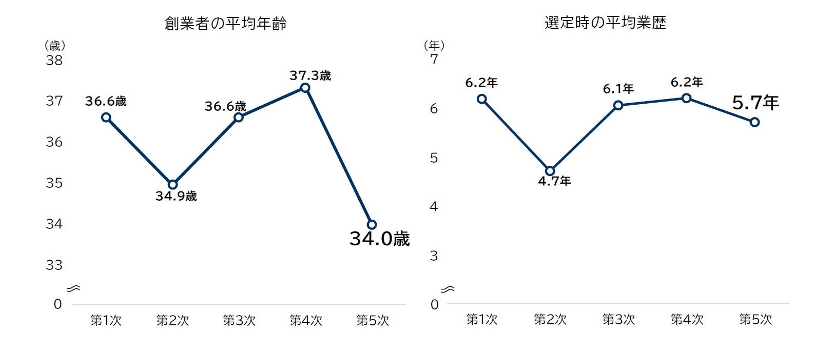 創業者年齢は30代が中心 選定時の設立年数は平均5年前後