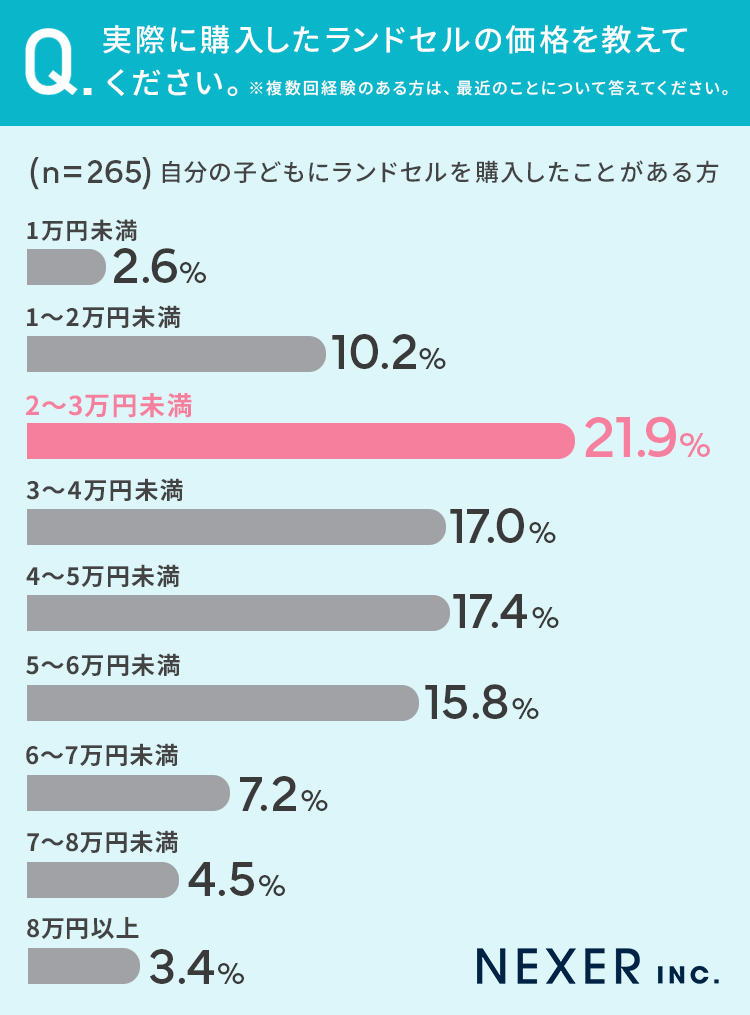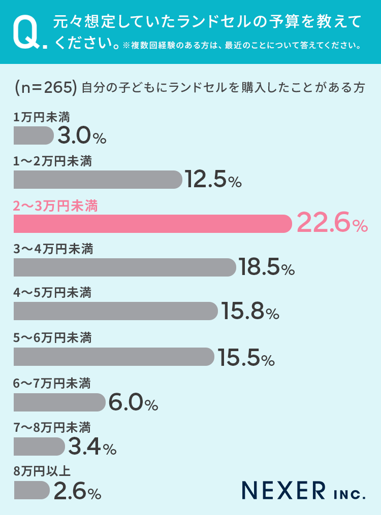 株式会社NEXER・ランドセルの購入予算に関する調査