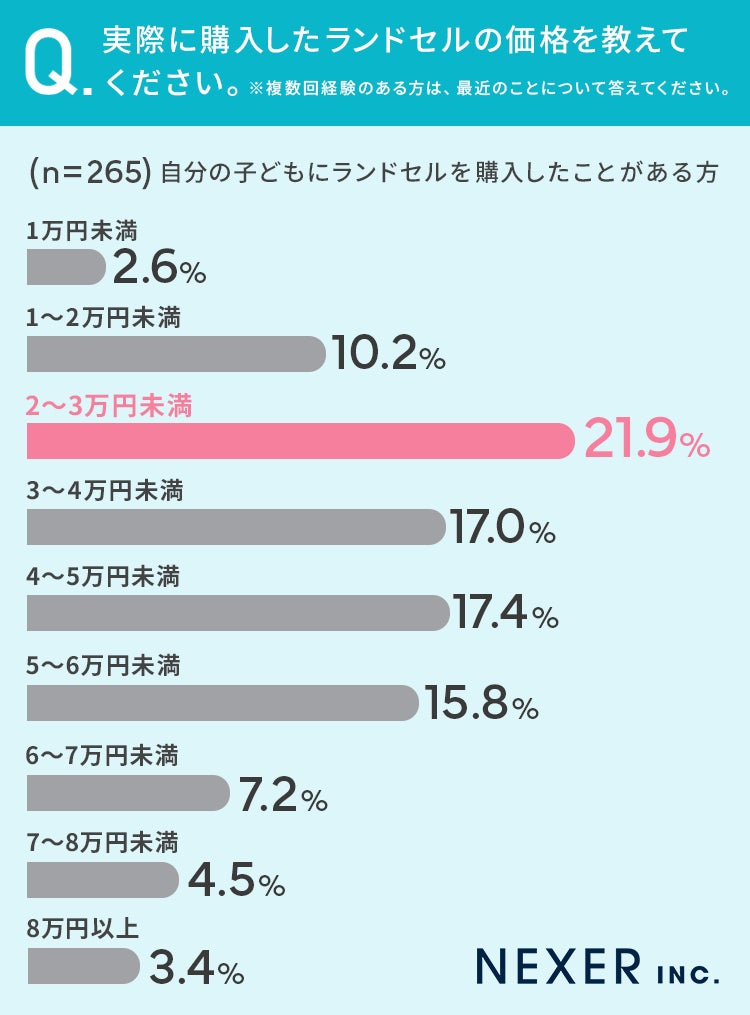 さらに、実際に購入したランドセルの価格を聞いてみました。