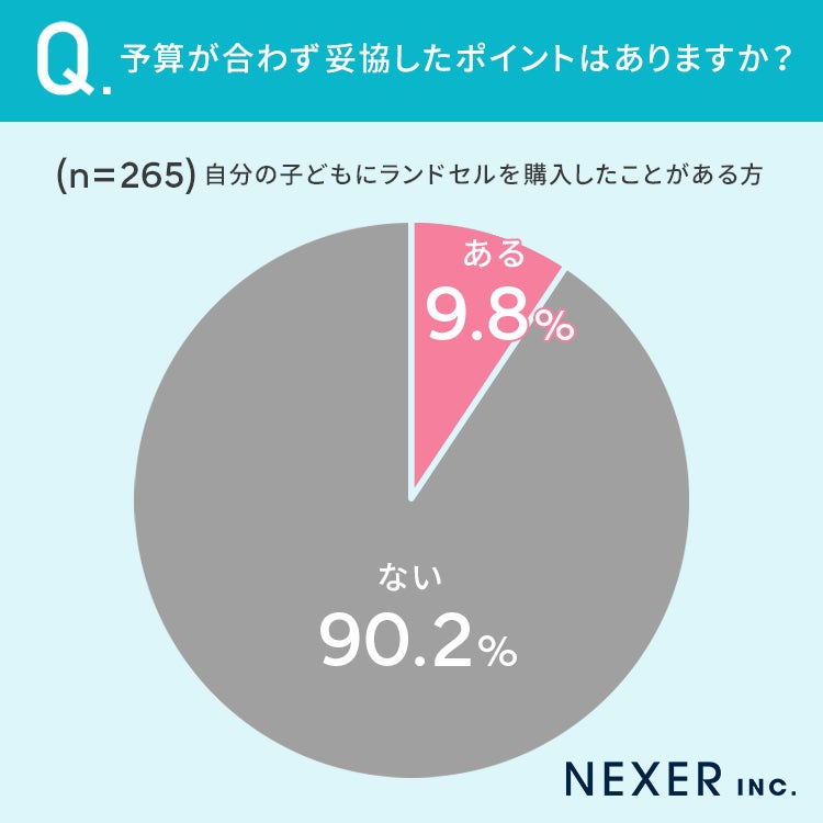 約1割の方が、ランドセルの購入時に「予算が合わず妥協したポイントがある」と回答しています。
