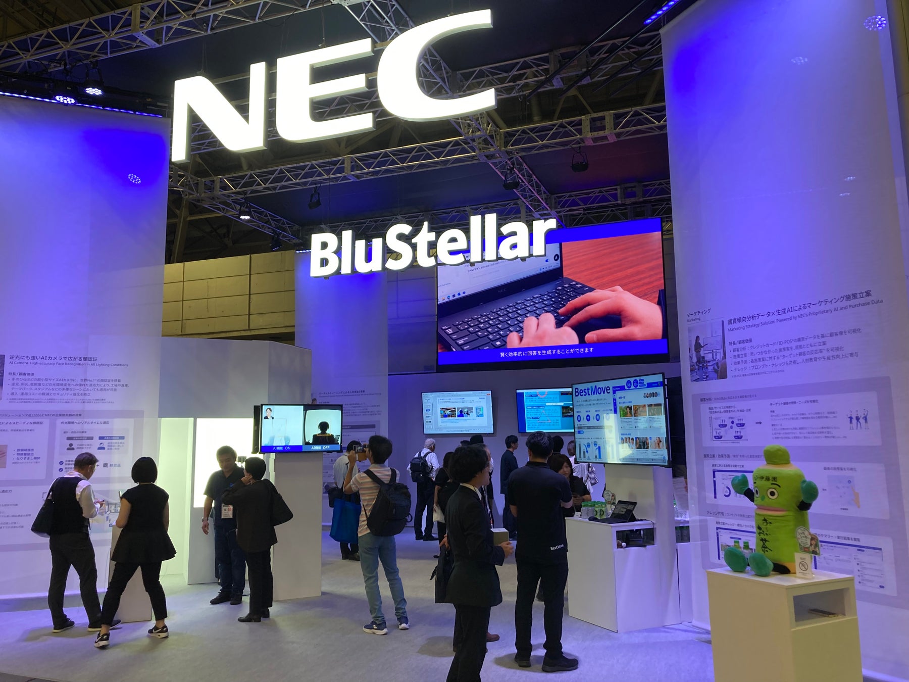 CEATEC開催期間中、NECは“すべての変革に +AI”をコンセプトに掲げ、展示を行いました。「モビリティ」「マーケティング」「顧客体験」「人材育成」の4つのテーマに沿って、NECのAI技術の取り組みや「BluStellar(ブルーステラ)」(注1)の先進技術、具体的なソリューションなどを紹介。来場者の皆様に、社会や企業へ提供できる価値を体感いただきました。