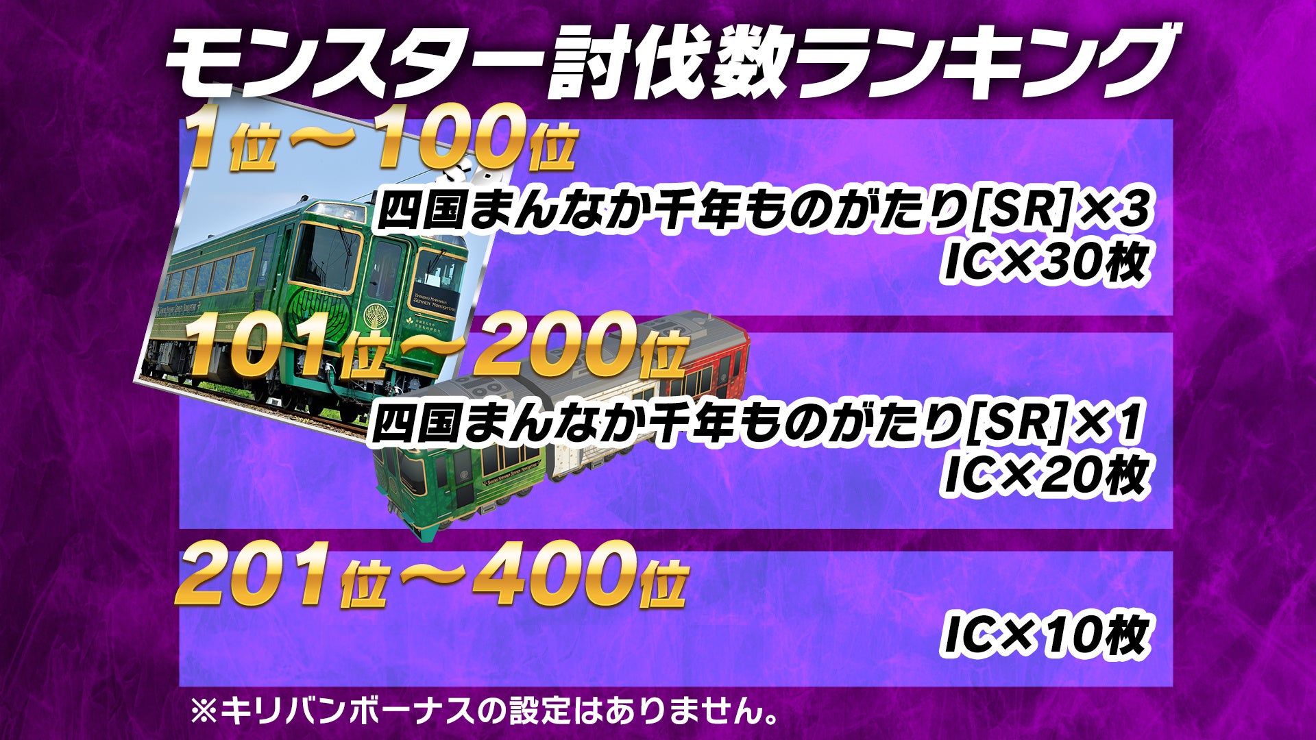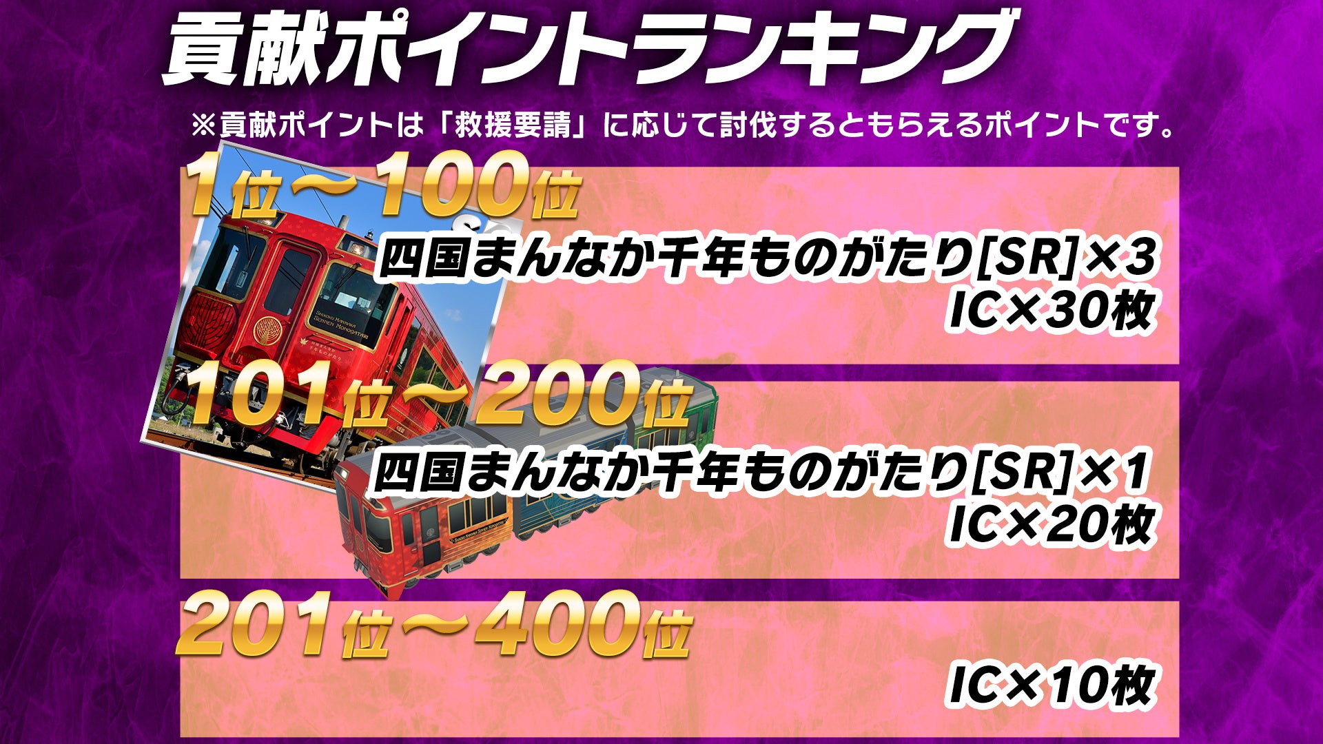 イベントでの活躍に応じてJR四国で活躍する観光列車のソダテツが獲得できます。