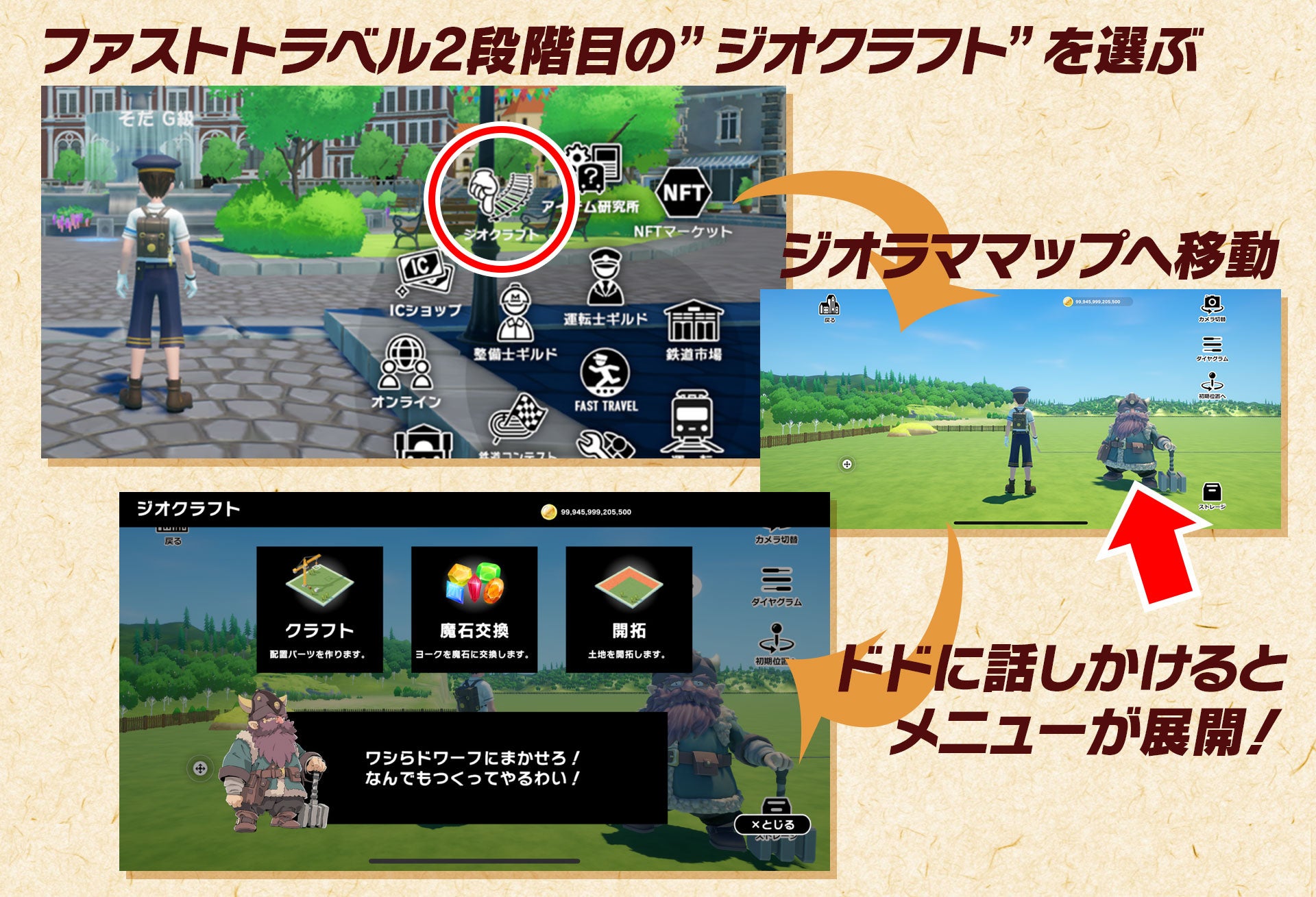 「ジオクラフト」とは自分だけの鉄道ジオラマをつくって楽しむクラフト機能です。