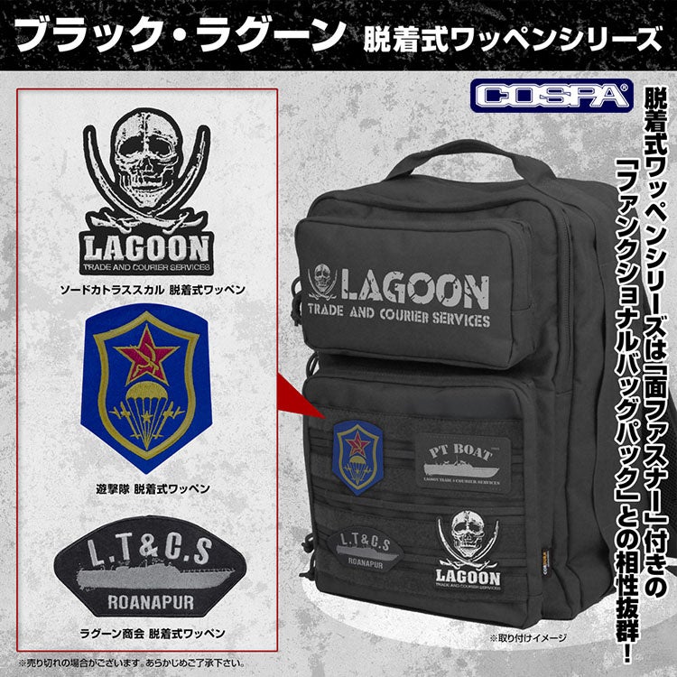 運び屋の必需品!『ブラック・ラグーン』より、『ラグーン商会』の多機能「バックパック」、『ソードカトラス』のスカルマークを刺繍で表現した「ワッペン」が登場!【株式会社コスパ】