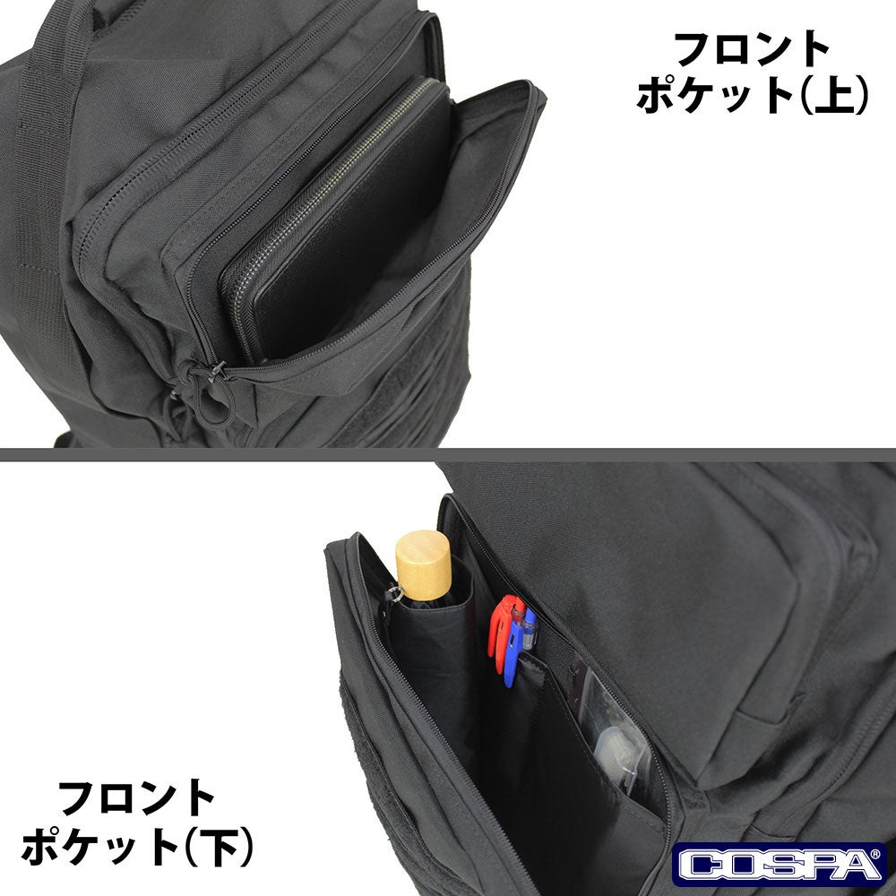 ・マジックテープつきのモールシステムと専用テープを搭載。付属品や脱着式ワッペンのほか、キーホルダー等が付けられます。