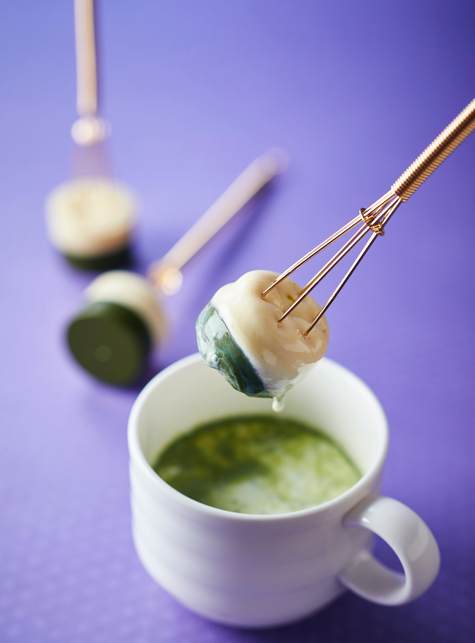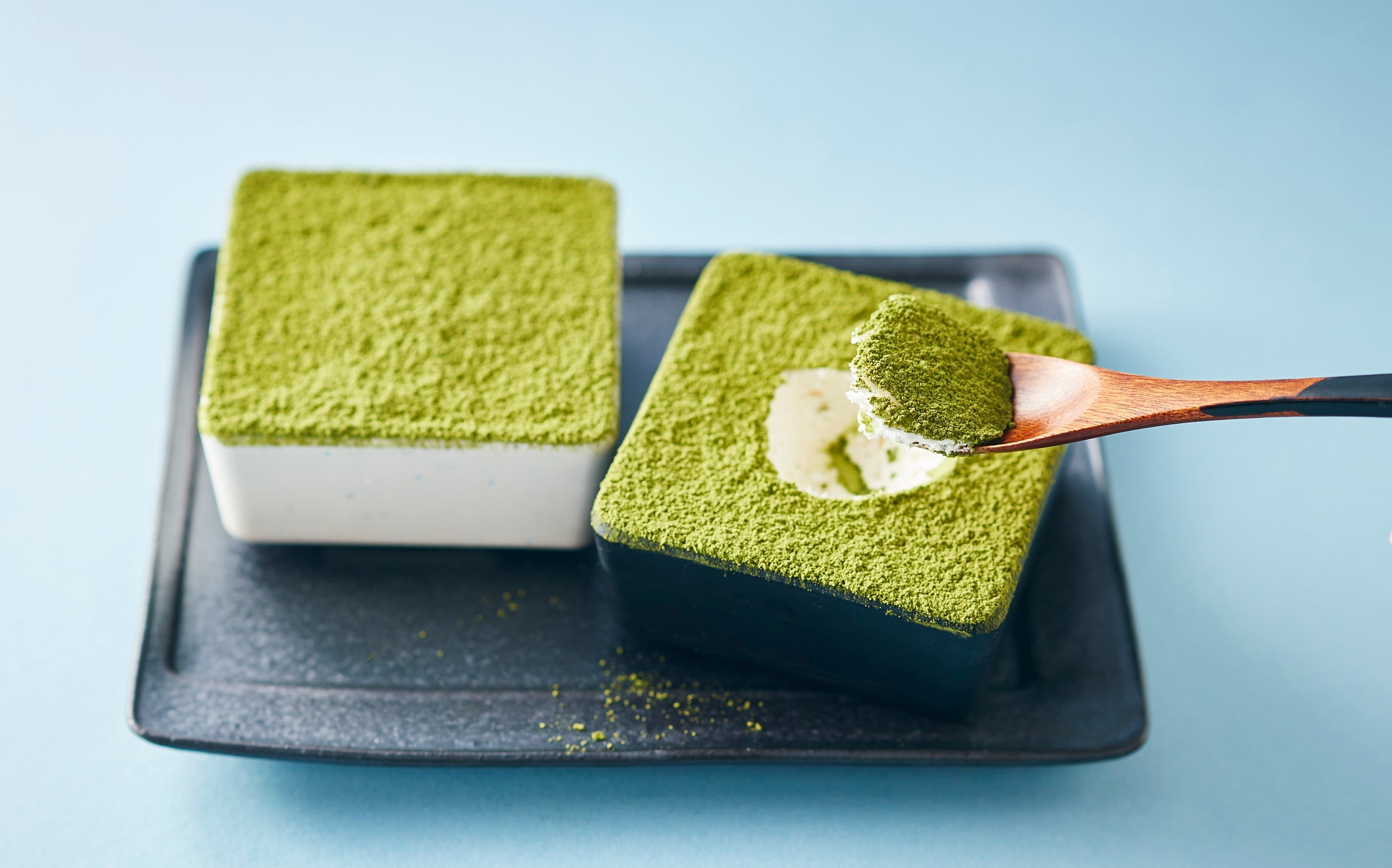 ・抹茶のケーキとミルクチョコムース 苔玉見立て