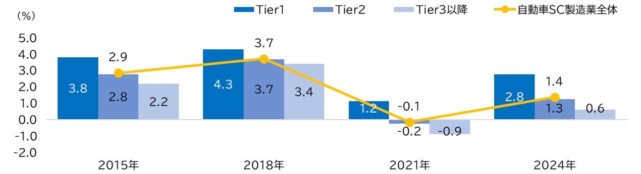 2024年の営業利益率は1.4% Tier間の差は2018年の1.3倍から4.7倍へ広がる