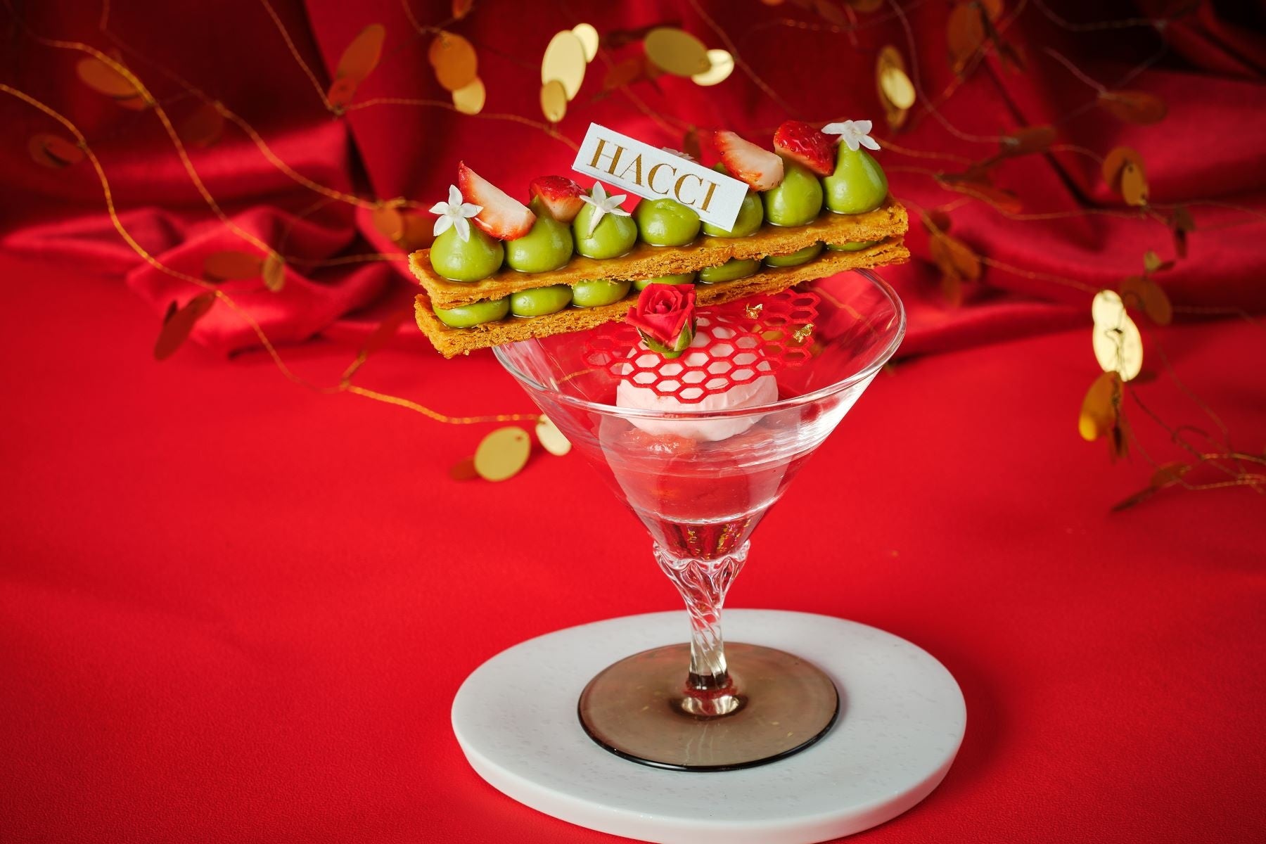 また、はちみつに美容成分をプラスすることで生まれた、美と健康に特化したHACCIオリジナルはちみつ「ビューティーハニー ヒアルロン酸入りはちみつ」を使用したスペシャルデザート「ベリーのパフェ いちごと抹茶のミルフィーユ」や、薔薇プラセンタと25%の天然ビタミン果汁配合で透明感あふれる美肌をサポートするビューティードリンク「ハニースノー」入りのスペシャルドリンクをオプションでご堪能いただけます。
