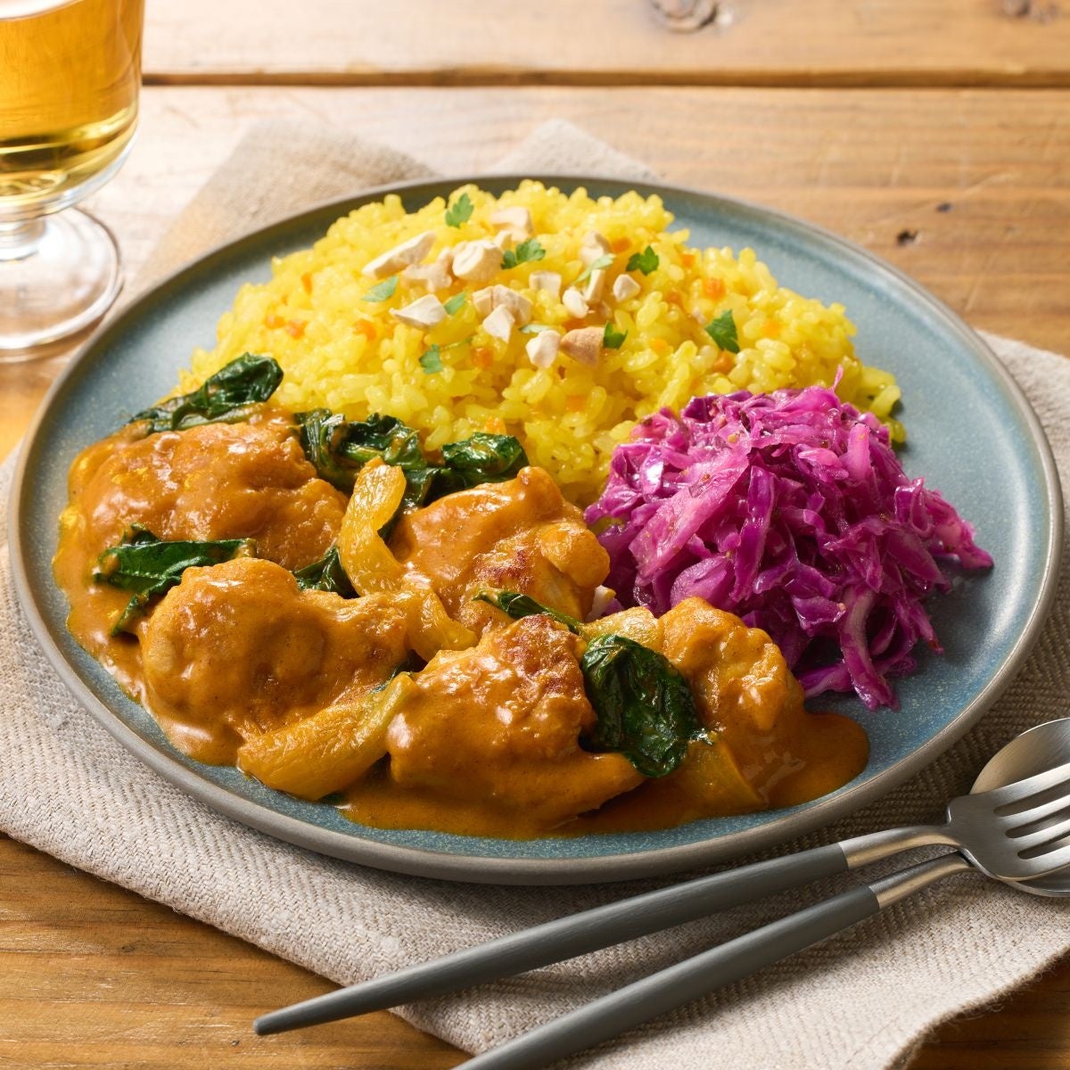 概要:DEAN & DELUCA 監修メニュー。もともと人気のメニューを、おいしさはそのまま包丁要らずの10分で仕上がる「超ラクKit」に。お家ではなかなか再現できない本格的でスパイシーな香りと、ヨーグルトのほのかな酸味が美味しいマサラチキン、さわやかなレモンライスとマリネを添えたワンプレートディッシュです。