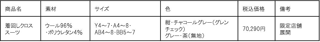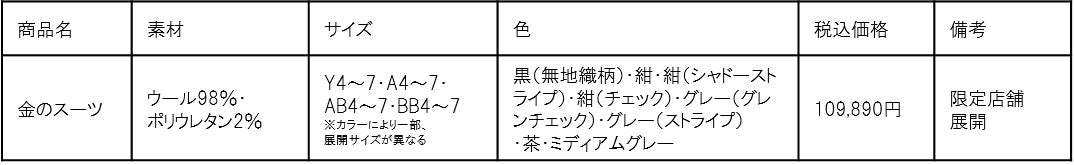 今回、本コレクションから販売を開始した商品は、お客様のライフスタイルに合わせてお選びいただけるよう「金のスーツ」と「着回しクロススーツ」の2パターンをご用意しました。