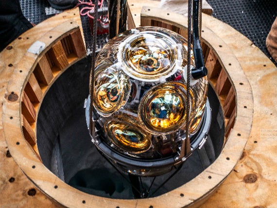 D-Eggは、1つのガラス球内に上下2方向を向いた高感度光センサーを搭載した、南極点氷河専用に設計された光検出器です。上下両方向からの光を同時に捉えることで、ニュートリノ反応によって生じる微弱な光の到来方向や光量を、従来よりも高い精度で測定できます。mDOMと併用することで、異なる検出性能を持つ複数のセンサー情報を組み合わせた観測が可能となり、検出性能と観測の信頼性がさらに向上します。