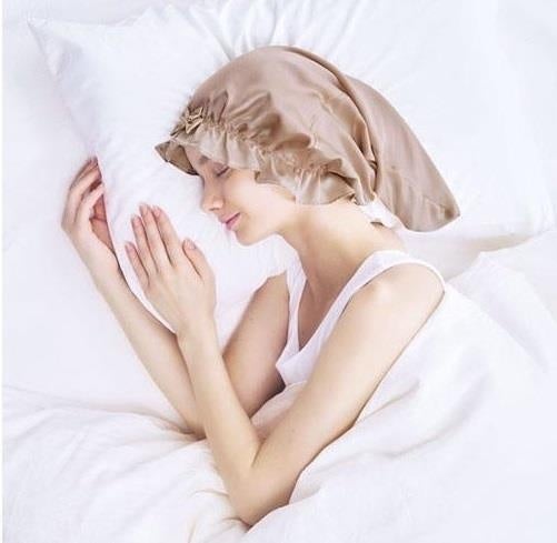 シルク100%生地のナイトキャップにロングヘア向けが新登場。睡眠中の摩擦や乾燥を防ぎます。