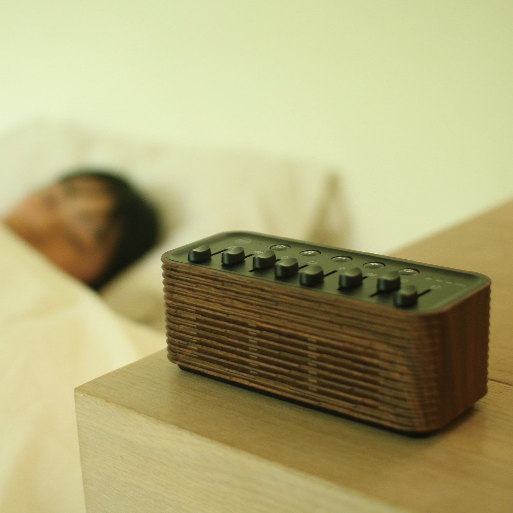 波や雨、焚火など8種類の環境音を再生しながら睡眠環境をサポート。おやすみタイマー付き。